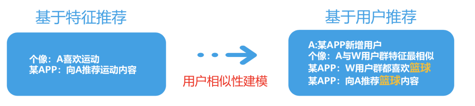 基于用户特征指导内容的推荐是指找到与目标相似的用户群,利用该用户群的行为特征对目标用户进行内容推荐,具体过程如下图: