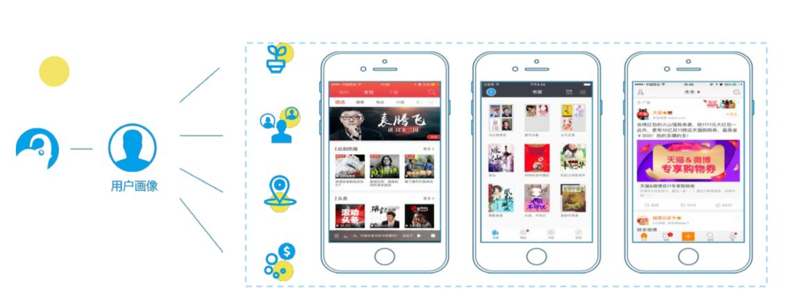用户画像常用在电商、新闻资讯等 APP,帮助 APP 打造内容精准推荐系统,实现千人千面运营。