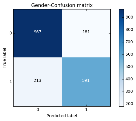 plot_confusion_matrix(cnf_matrix, classes=class_names, title='Gender-Confusion matrix')