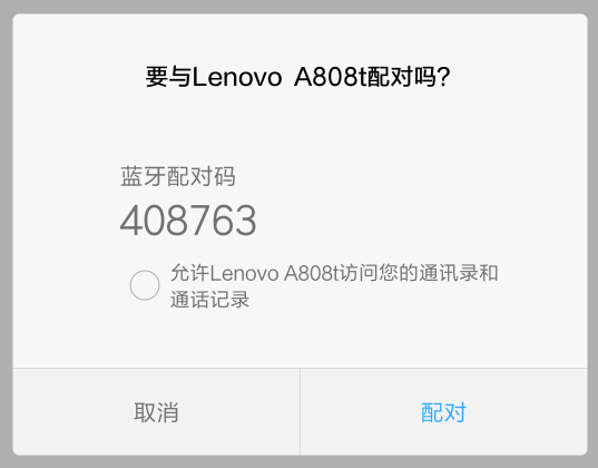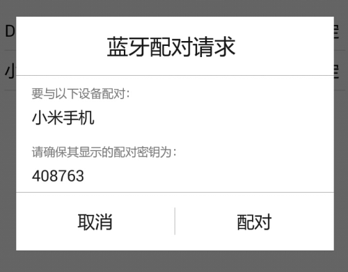 从上面的方法说明可以看出,搜索获得新设备后,即可调用设备对象的createBond方法建立配对。但配对成功与否的结果同样不是立即返回的,因为系统会弹出配对确认框供用户选择,就像下面的两个界面截图那样,左图是A手机上的配对弹窗,右图是B手机上的配对弹窗。