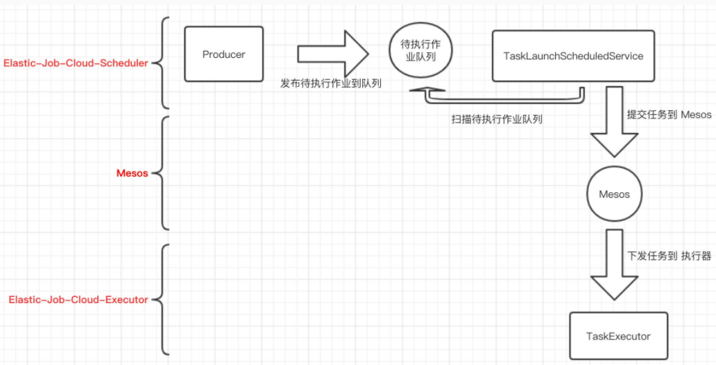 由于elastic-job-lite 不支持动态添加作业,此处仅贴上elastic-job-Cloud架构图: