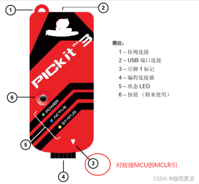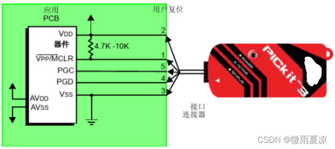 特别要注意,三角形为引脚1标记,接MCU的MCLR引脚