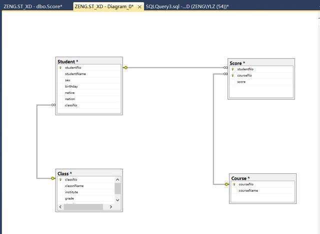 (1) 在数据库ST中创建班级表Class、学生表Student、课程表Course和成绩表Score,要求为每个属性定义恰当的数据类型和长度,并为每张表指明主键和外键。