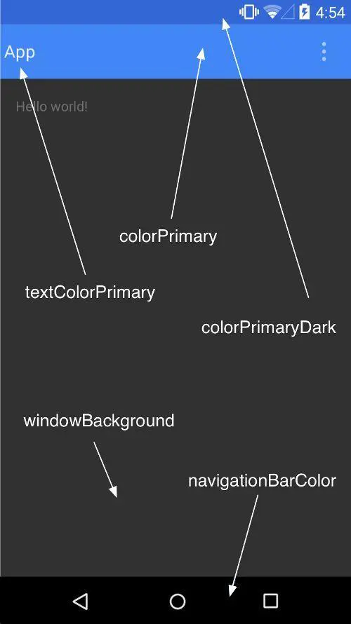 <style name="AppTheme" parent="Theme.AppCompat.Light.NoActionBar"><item name="colorPrimary">@color/colorPrimary</item><item name="colorPrimaryDark">@color/colorPrimaryDark</item><item name="colorAccent">@color/colorAccent</item><item name="android:textColorPrimary">@color/textColorPrimary</item>
