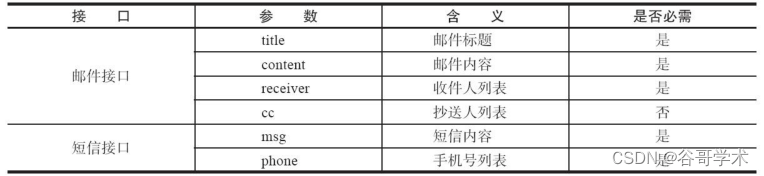 接口:邮件报警接口和短信报警接口。这两个接口为HTTP接口,这样接口