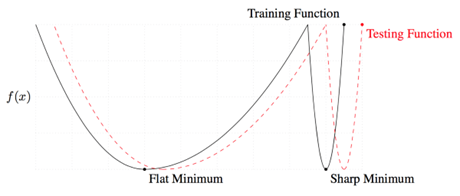 首先是On Large-Batch Training for Deep Learning: Generalization Gap and Sharp Minima这篇经典文章,里面的这张flat minima和sharp minima的图画得很漂亮,然而这篇文章跟batch size有关,跟数据集大小无关,是讲大batch size训练使得目标函数倾向于收敛到sharp minima,sharp minima导致了网络的泛化性能下降。而小的batchsize则倾向于收敛到一个flat minima,这个现象支持了大家普遍认为的一个观点:小的batchsize存在固有噪声,这些噪声影响了梯度的变化。