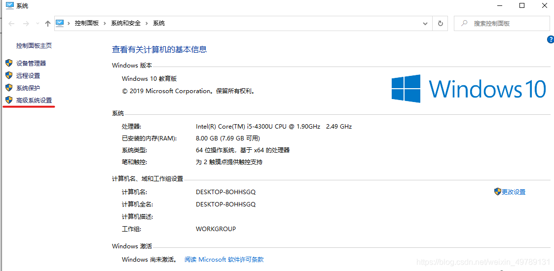1、打开高级系统设置