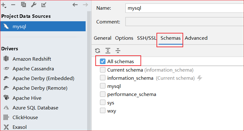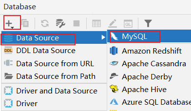 2. 点击窗口的+号图标然后选择data source 再选择你要连接的数据库