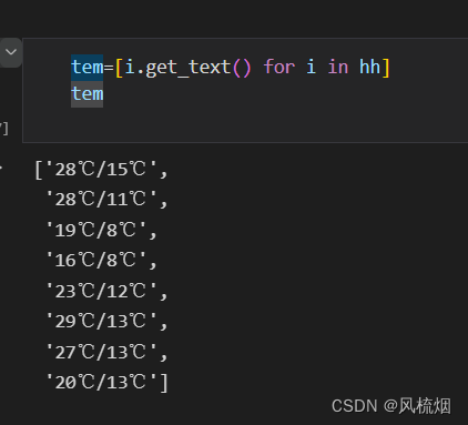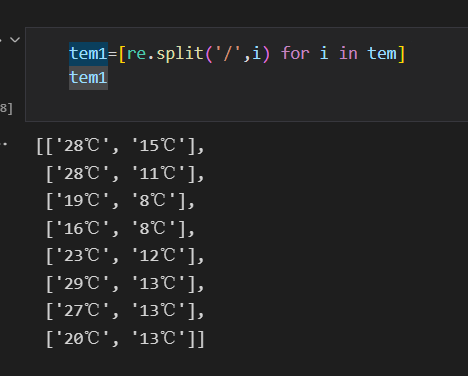 9、利用列表推导式把摄氏度的符号去除
