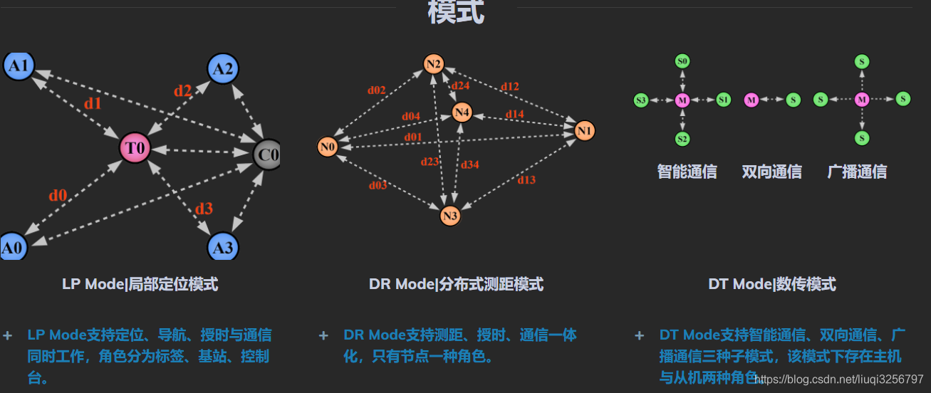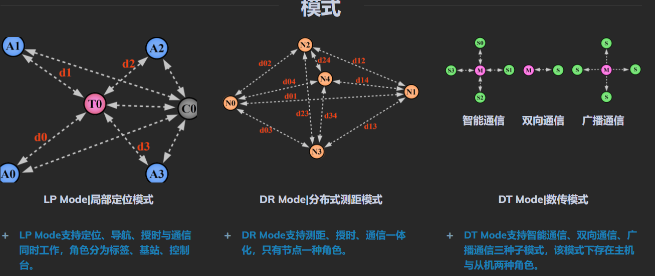 此外,国内新兴公司nooploop(深圳空循环科技有限公司)发布了LinkTrack UWB高精度定位系统,刷新率达200Hz,研发了三种机制模式,局部定位模式、分布式测距模式、数传模式,确实厉害。