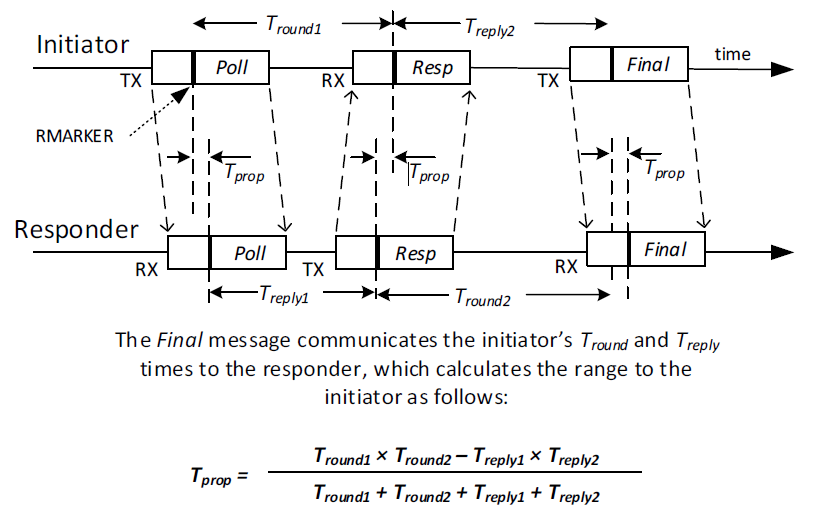 TWR方式具体可以详查DECAWAVE公司文档(APS013The Implementation of Two-Way Ranging with he DW1000)