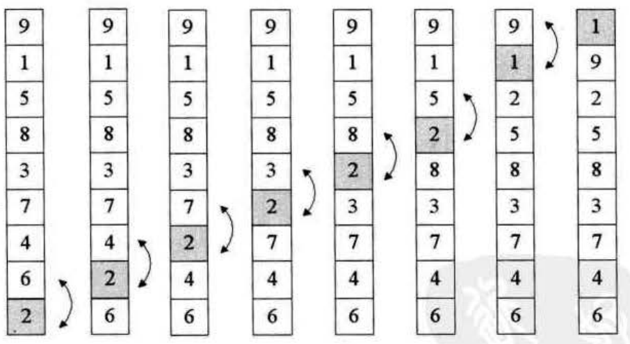 - 重复步骤3,直到该元素大于当前扫描到的元素