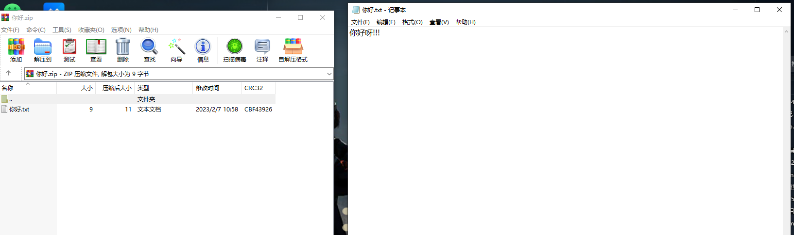 准备一个文本压缩包如下。