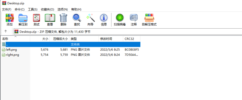 准备好一个压缩包,格式为zip,存放两张png图片。