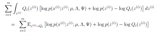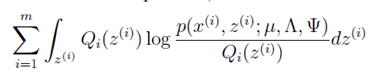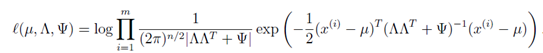 到这里就很清晰了。还是老套路,接下来利用最大似然法求解参数从而得到x,z的联合分布。此时参数为,