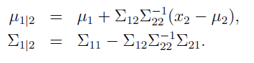 是什么形式呢?由多元高斯型联合分布和边缘分布的关系,我们不难进行以下推导: