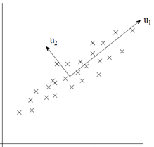 以2维数据压缩为1维数据为例,PCA要做的找到一个新的维度,是数据在新维度上的方差最大(即投影长度最长,如u1的方向所示)。因为根据信息论的观点,数据所包含的方差越大,那么数据所包含的信息量越大。如果新的投影方向u1能够包含原有数据的大部分信息(假设85%以上),那么可以认为在保证了数据信息的精度上进行了压缩。
