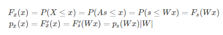 即可以将问题如下定义:设x(n*1维)为话筒最后发出的声音,s(n*1维)为每个人的声音,A(n*n)称为混合矩阵(mixing matrix),那么有以下关系 。我们的目的在于解出s。设