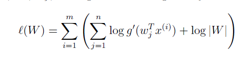接下来又到了求参环节了,这里我们的参数是W,同样利用最大似然法进行参数的求解。写出最大似然方程: