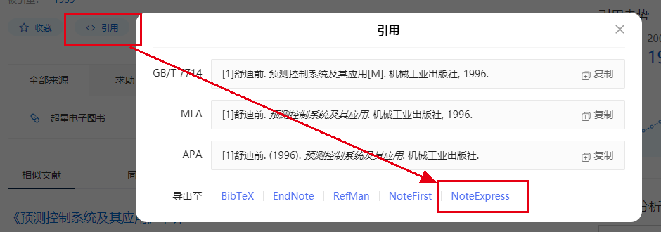 一些第三方学术平台可以自动导出参考文献信息并录入到NoteExpress中。以百度学术为例。如图是我们在百度学术中搜索到的一篇文章。