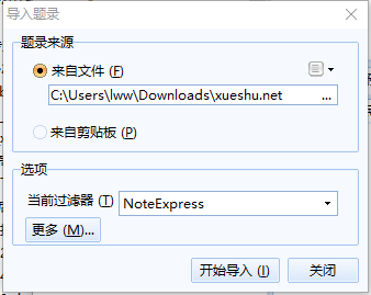 双击下载好的文件,跳出导入题录对话框,点击开始导入。