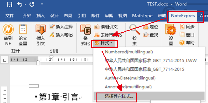 在Word中NoteExpress选项卡下的样式中选择我们自定义的样式。