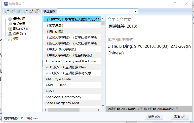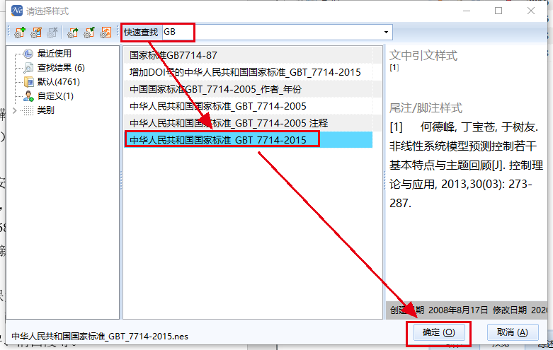 如我们搜索GB国标-》GBT 7714-2015,然后点击确定。