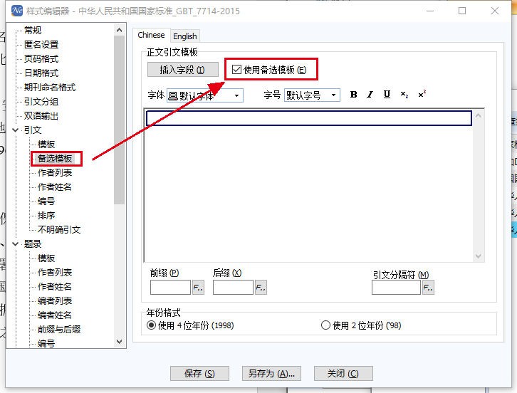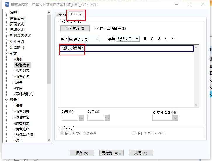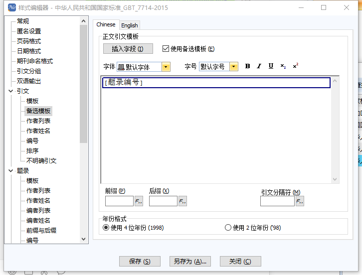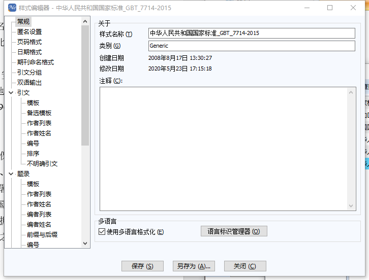 因为NoteExpress不允许对内置格式进行修改,所以我们修改完成后点击另存为,将该样式存为一个我们自己的样式。