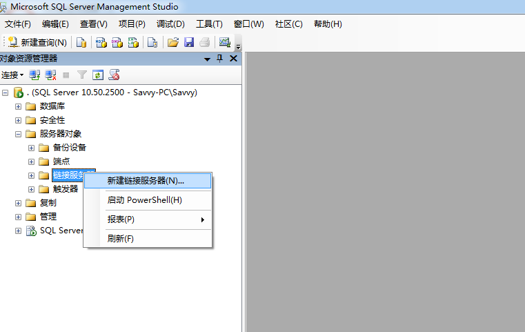 - 选择“链接服务器”-右键-“新建链接服务器”;