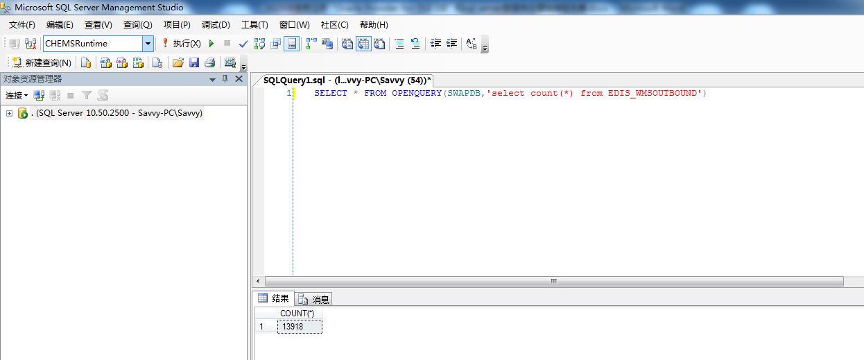 SELECT * FROM OPENQUERY(SWAPDB,'select xxx from 表名')