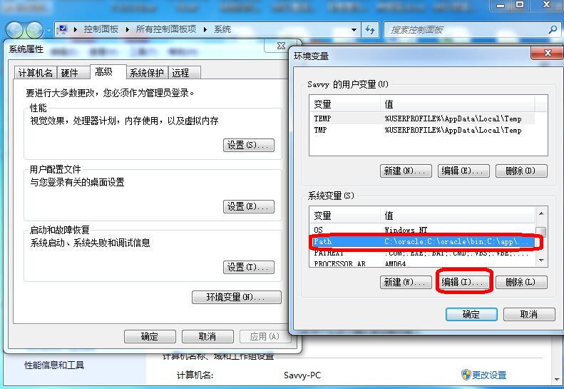4. 在系统环境变量中,为Path添加“C:\oracle;C:\oracle\bin;”