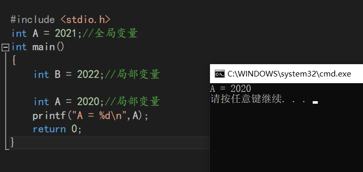由此代码可知:当局部变量与全局变量冲突时,局部变量优先输出。