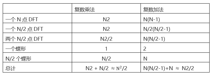 此外,还有4个蝶形结,每个蝶形结需要1次复乘,2次复加。一共是:复乘4次,复加8次。