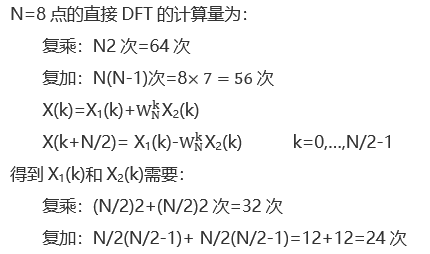 因为DFT的运算量与N2成正比,如果一个大点数N的DFT能分解为若干小点数DFT的组合,则显然可以达到减少运算工作量的效果。