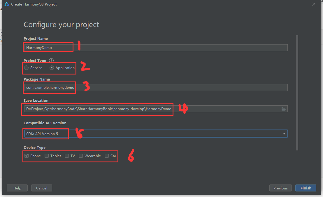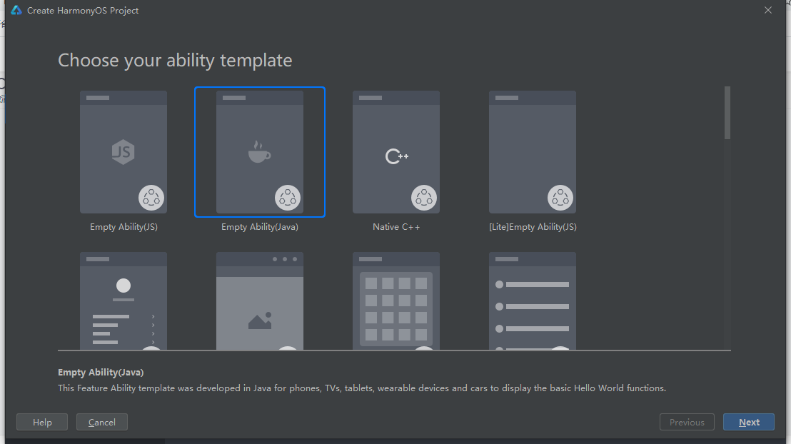 2. 点击 上一步的 Create HarmonyOS Project 下一步就是 项目选择项
