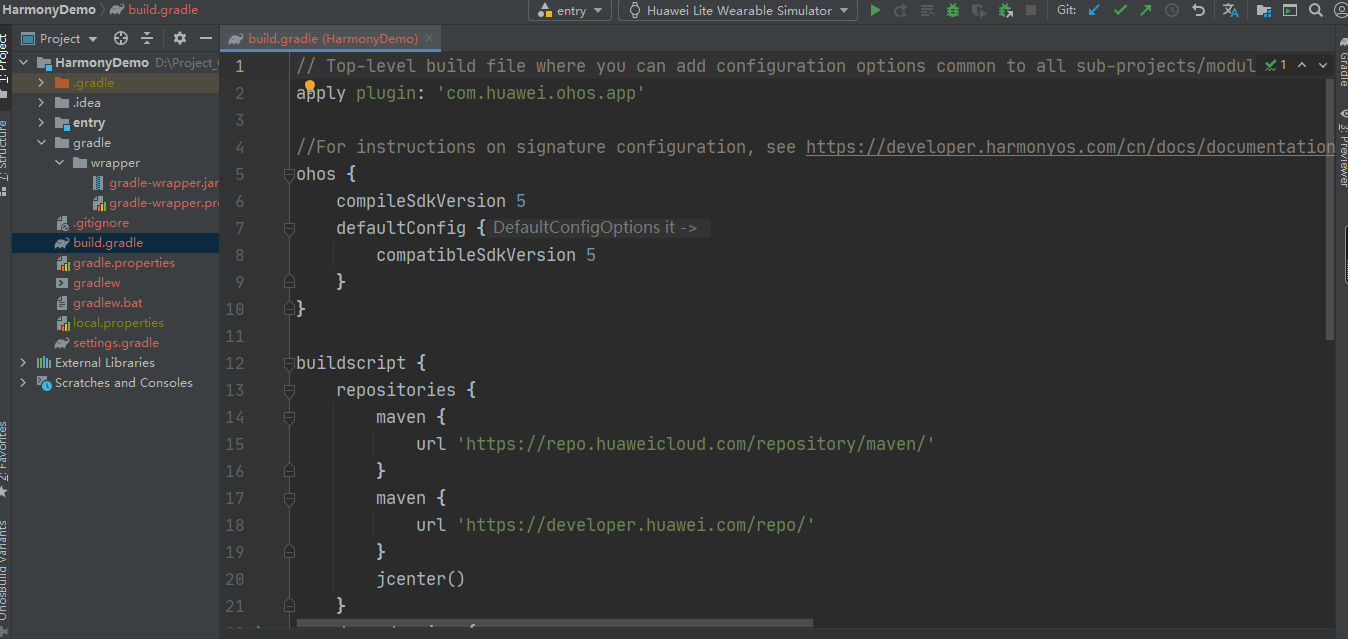 · app 中gradle配置也是和Android类似的,还有增加了鸿蒙的一些配置