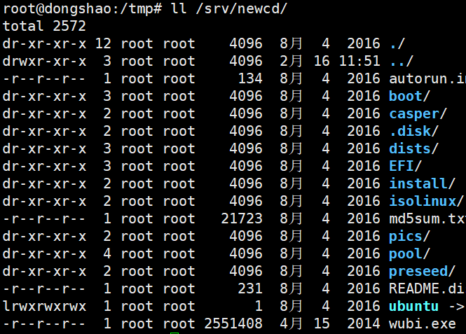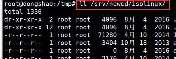 - 列出/srv/newcd/isolinux/目录内的内容:ll /srv/newcd/isolinux/