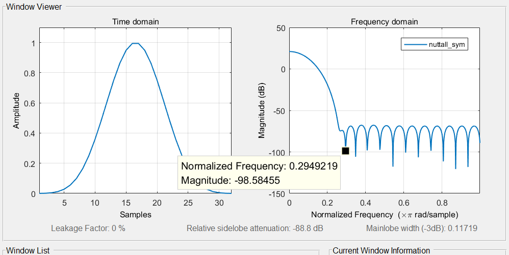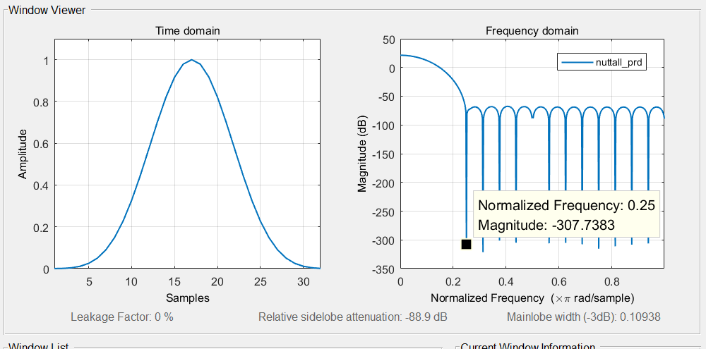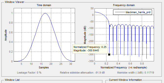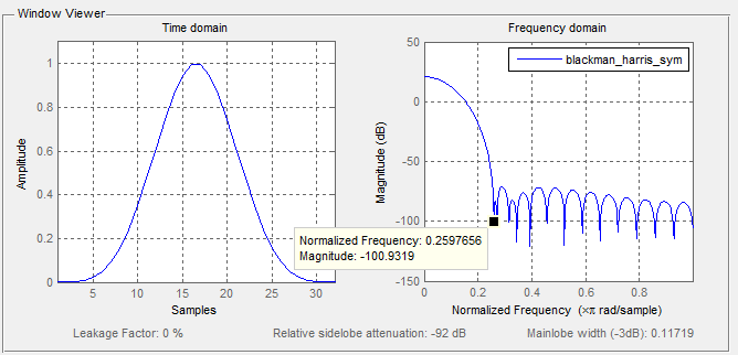 blackman_prd = blackman(N,'periodic');blackman_harris_sym = blackmanharris(N,'symmetric');