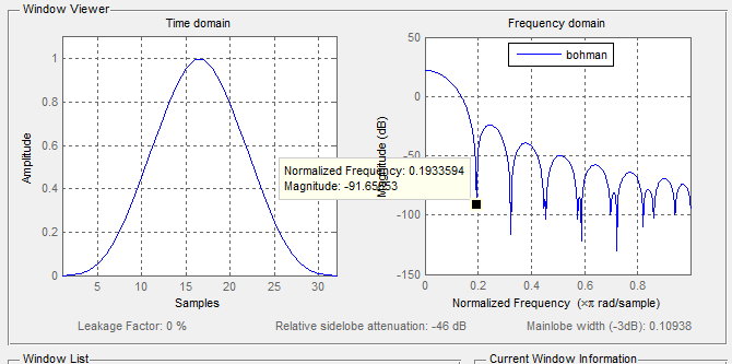 bohman_prd = bohman(N,'periodic');chebyshev_60 = chebwin(N, 60);