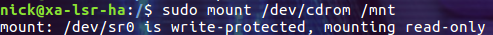 $ sudo mount /dev/cdrom /mnt
