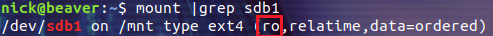 $ sudo mount -o ro /dev/sdb1 /mnt
