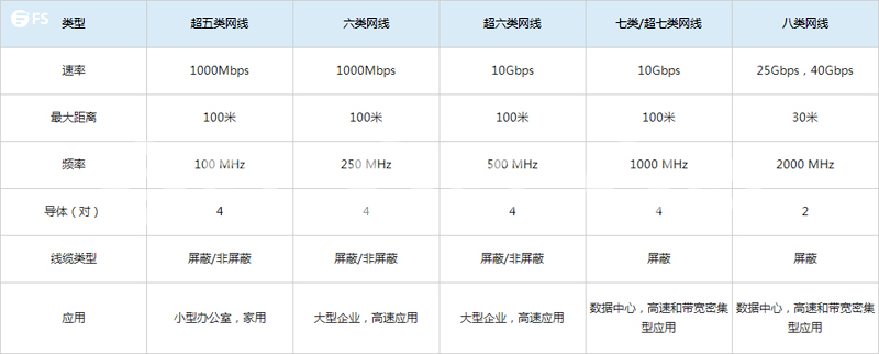 若您身处于网络通信行业,相信您应该了解一些以太网线缆,比如说超五类网线、六类网线和七类网线等等。但是您知道Cat8八类网线 是什么吗?它与五类网线、六类/超六类网线及七类/超七类网线有着怎么样的区别呢?下面就由飞速(FS)带您认识新一代网络跳线——Cat8八类网线吧。
