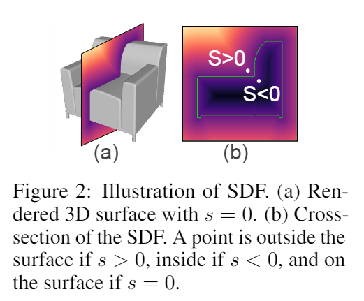 SDF: SDF 是一个将给出的三维空间坐标点映射为一个实数值
