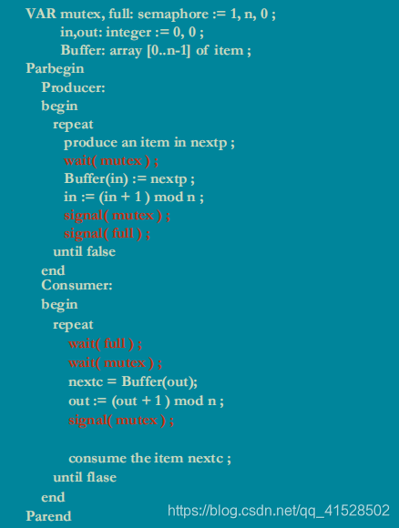 - 第一个生产者进程释放full后,便唤醒下一个进程。若为生产者进程,则继续阻塞,否则执行消费者进程;