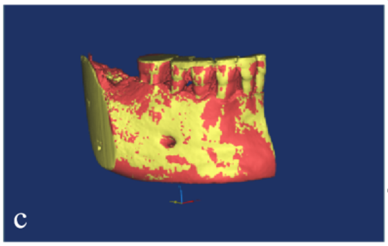 下面为配准的一个案例,通过CT导入,生成三维模型等步骤,最后得到配准后的模型(下图4为同一患者不同时期的下颌模型)