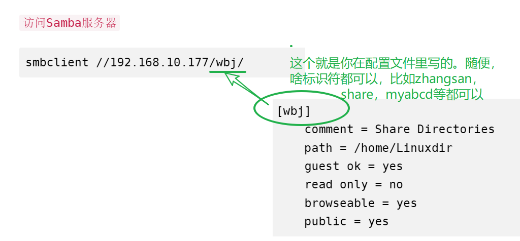 [wbj]comment = Share Directoriespath = /home/Linuxdirguest ok = yesread only = nobrowseable = yespublic = yes