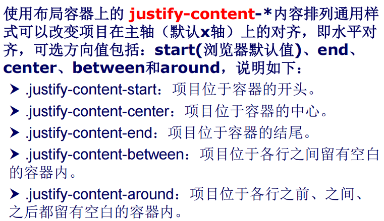 使用flexbox容器上的align-content通用样式定义,可以将flex项对齐到横轴上。可选方向有start(浏览器默认值)、end、center、between、around和stretch。