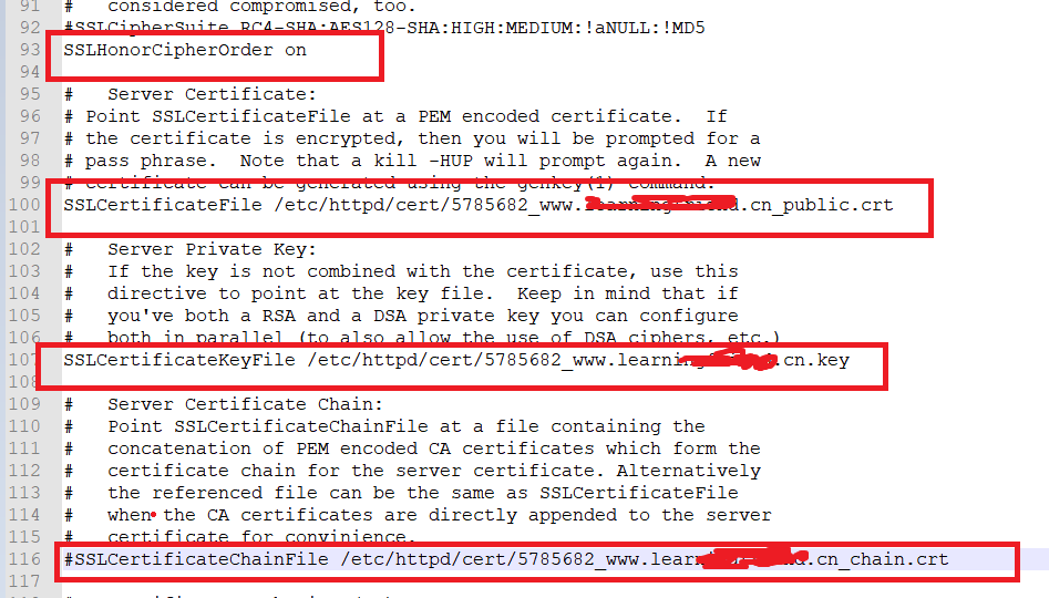 </VirtualHost>#如果证书包含多个域名,复制以上参数,并将ServerName替换成第二个域名。