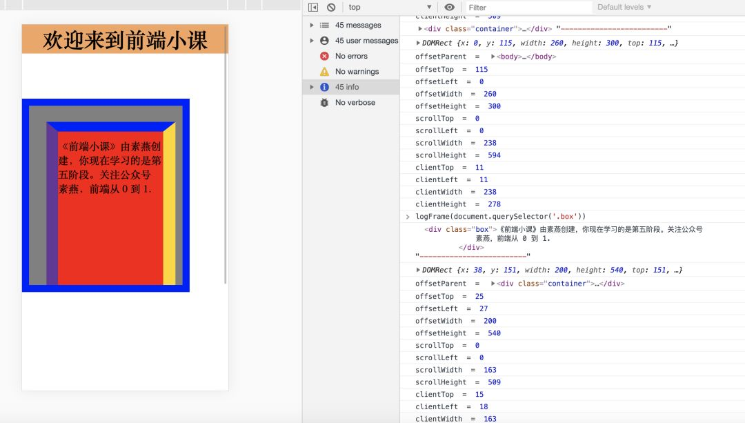 };var logFrame = function (elm) {console.log(elm, '-------------------------');console.log(elm.getBoundingClientRect());for (key in elm) {let whiteList = ['offsetTop', 'offsetLeft', 'offsetWidth', 'offsetHeight','scrollTop', 'scrollLeft', 'scrollWidth', 'scrollHeight','clientTop', 'clientLeft', 'clientWidth', 'clientHeight','offsetParent'];if (whiteList.indexOf(key) !== -1) {console.log(key, ' = ', elm[key]);}}