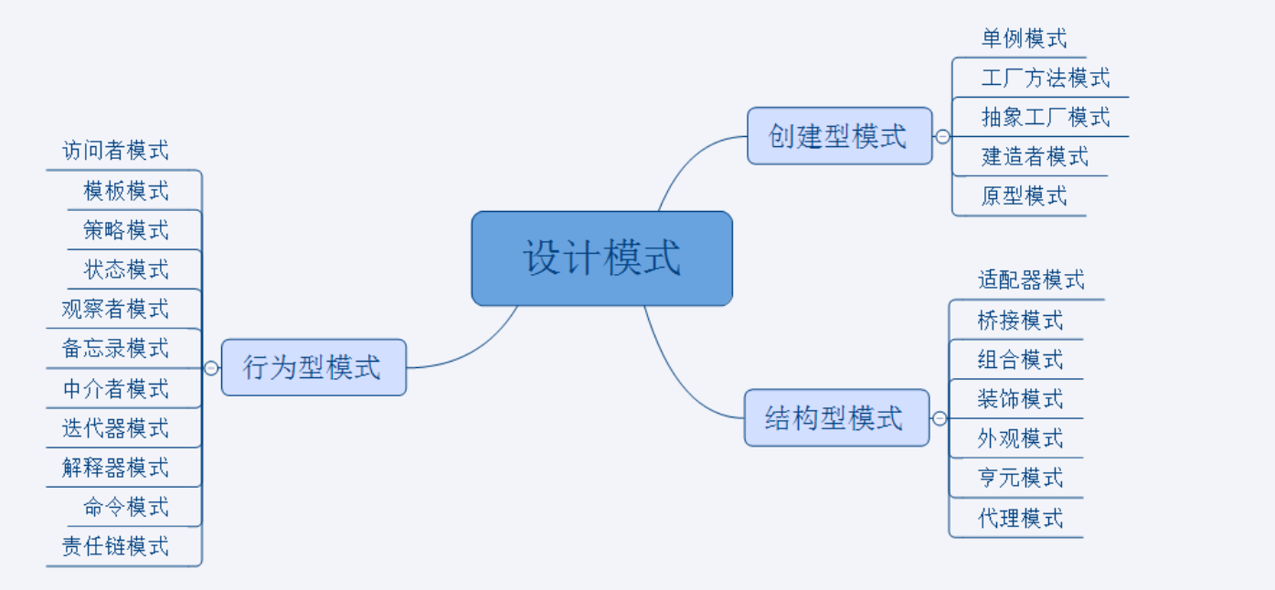 上面也说到了,设计模式是经过分类编目的,那么它就一定是有很多种分类的,所以按照这21种设计模式的使用场景和特点,可以分为以下八种!